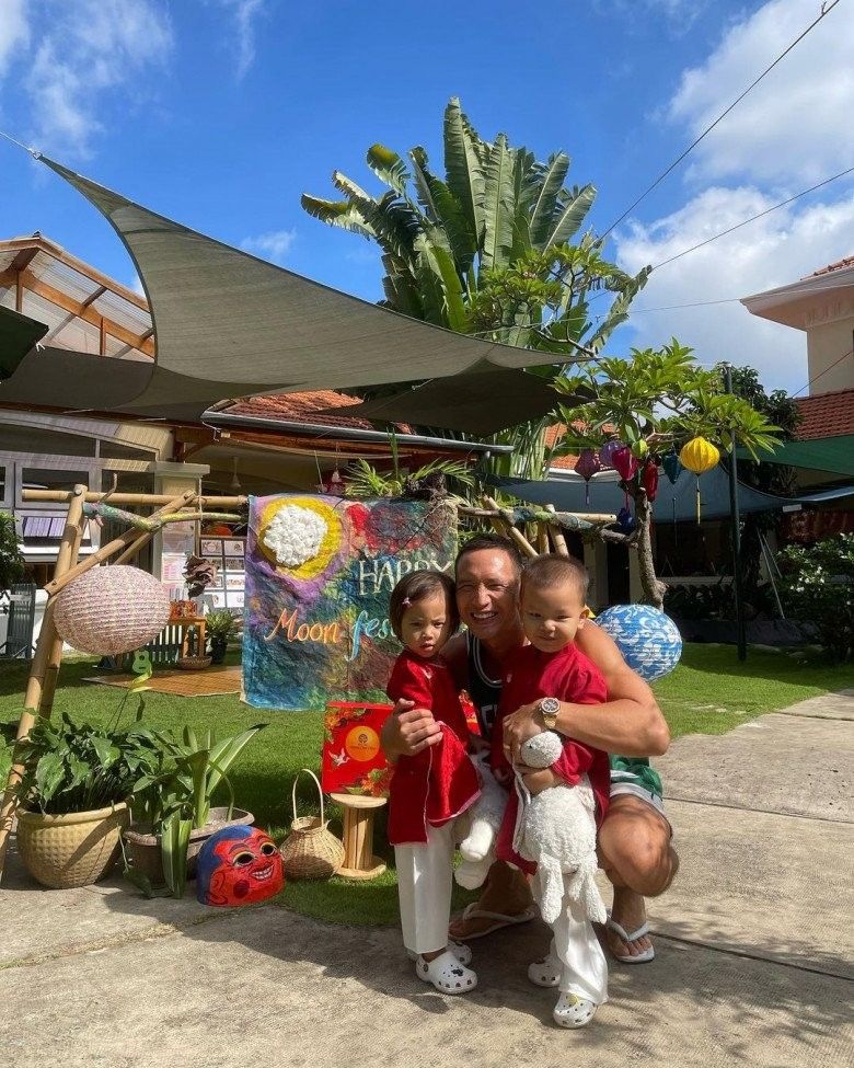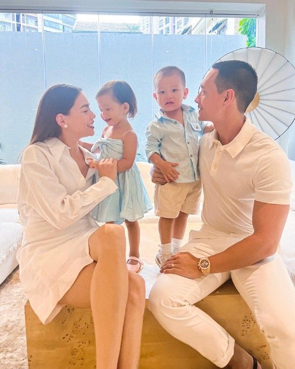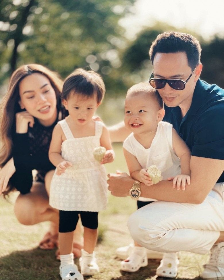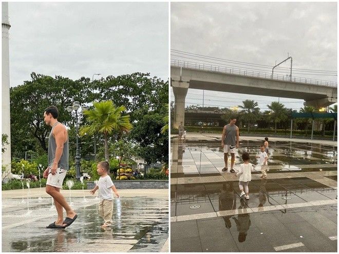 Được biết vào mỗi dịp cuối tuần, dù bận rộn công việc tới đâu vợ chồng Hà Hồ Kim Lý cũng đều sắp xếp thời gian để đưa các con đi công viên chơi. Không chỉ ở nhà mà khi ra ngoài Kim Lý đã rủ bỏ hình ảnh soái ca. Thay vì những bộ vest lịch lãm, Kim Lý chọn áo thun cộc tay và quần short cùng dép kẹp để thoải mái vận động với hai con yêu. Anh nhiệt tình bày trò bên các con.