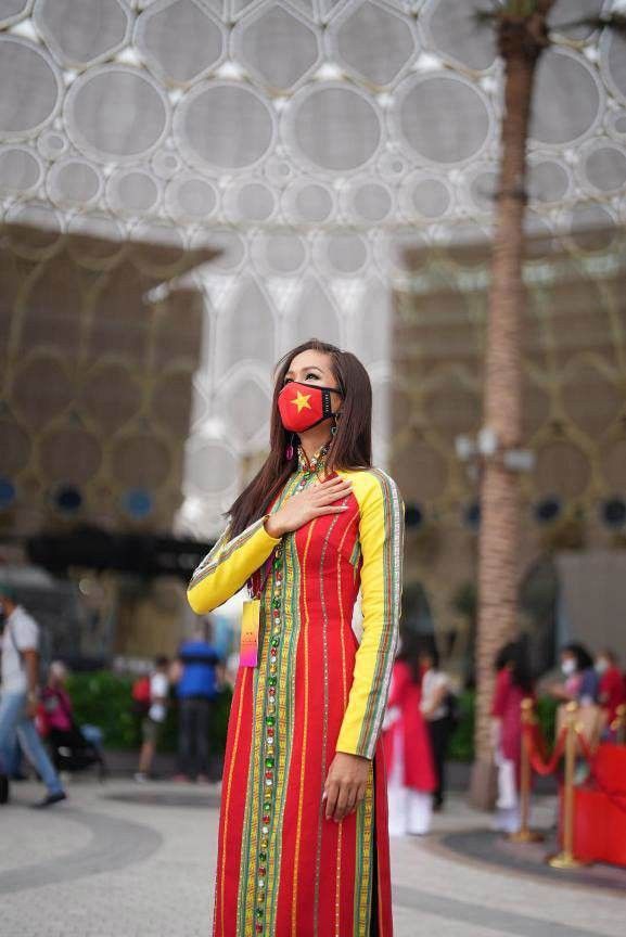 Tà áo dài tuyệt đẹp được mỹ nhân 9X diện trong chuyến công tác Dubai trước đây.