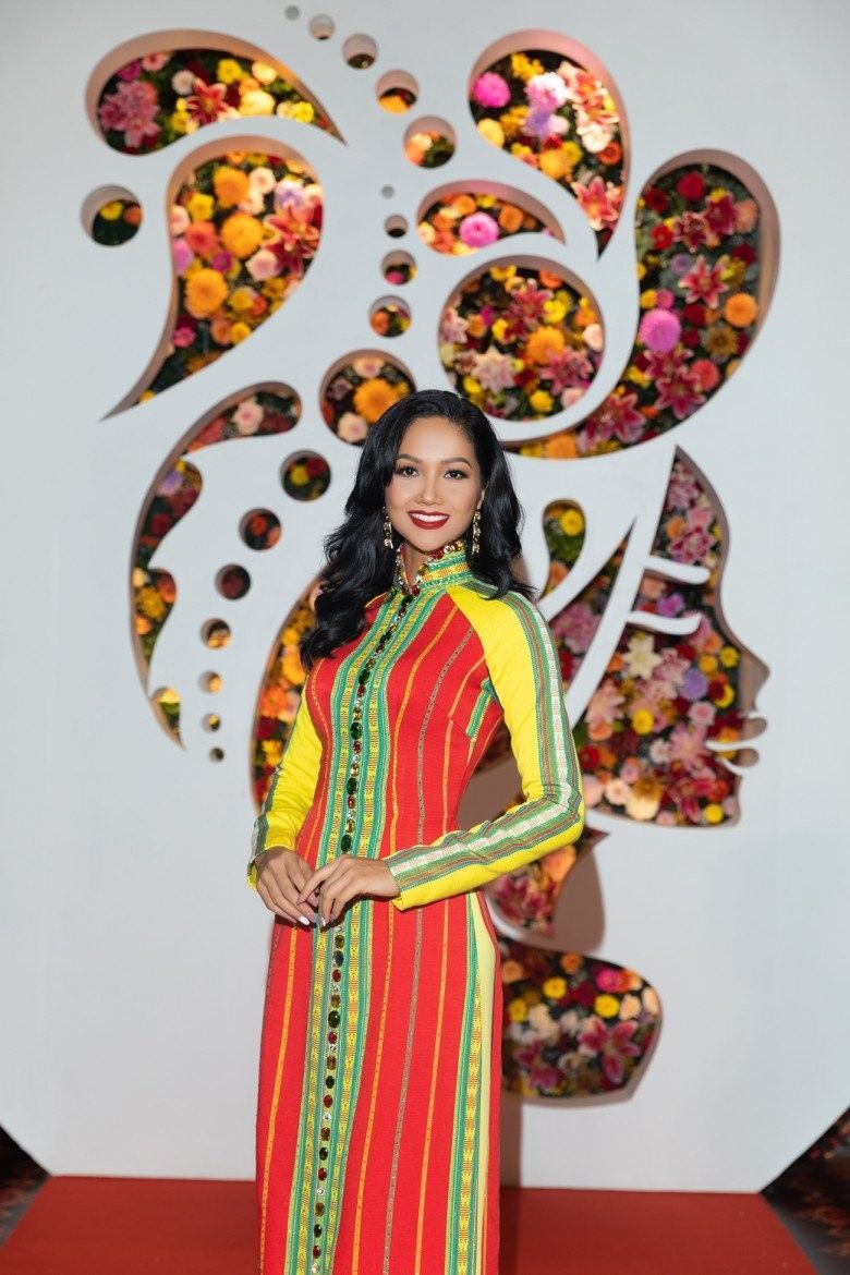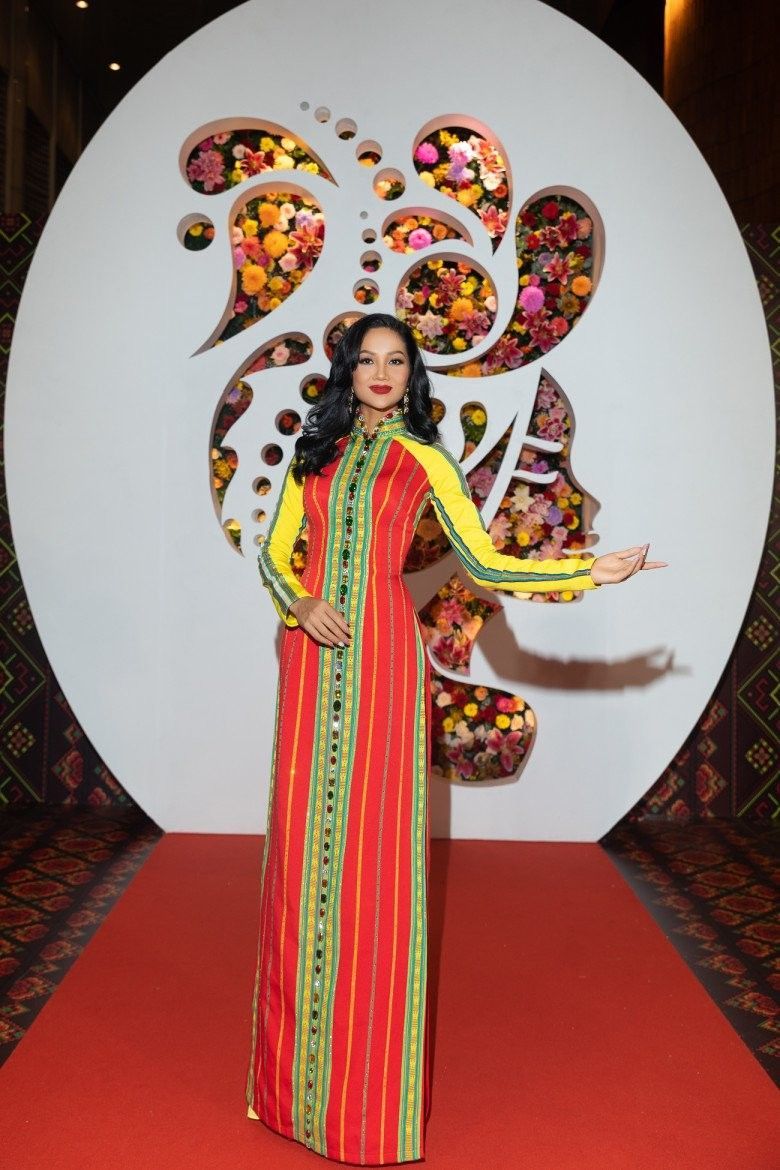 H'Hen Niê xuất hiện thanh lịch và sang trọng với tà áo dài thổ cẩm.