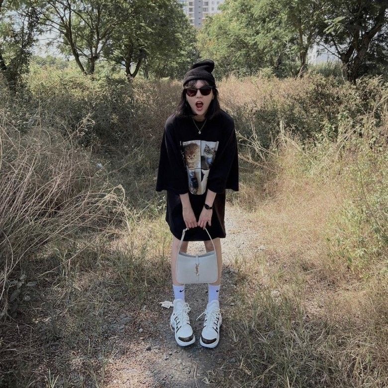 ...khi thì "lên đồ" cực cá tính và chất chơi với mốt "giấu quần" cùng áo phông oversize.