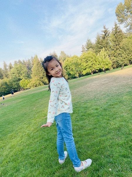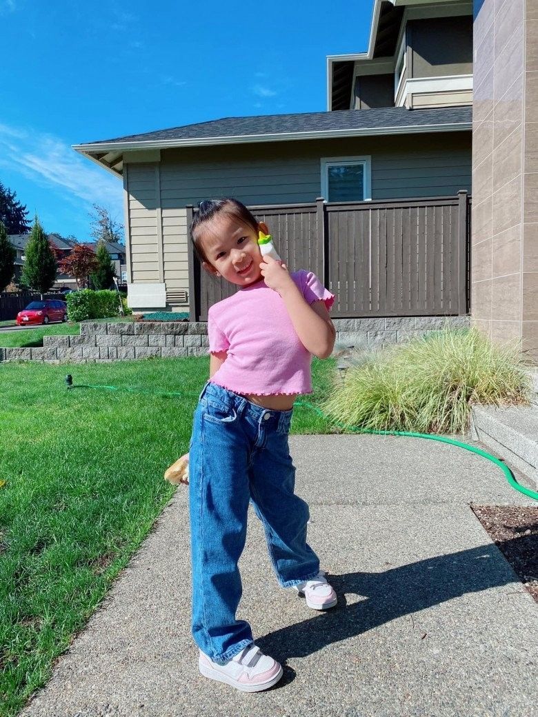 Cô nhóc cũng có đôi chân dài, thẳng tắp, dáng người đẹp.