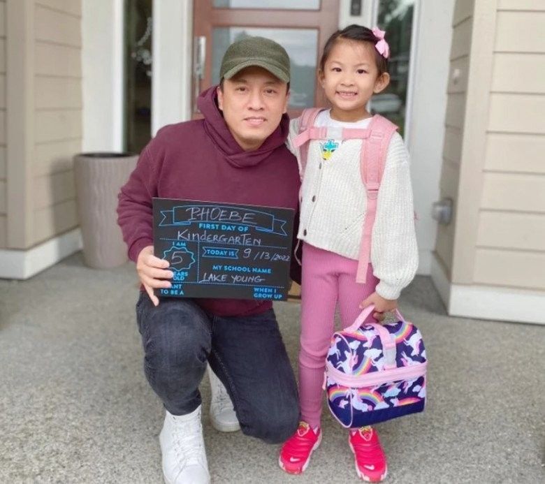 Anh Hai rất chịu khó đưa con đi chơi, cùng con đi học mỗi ngày.