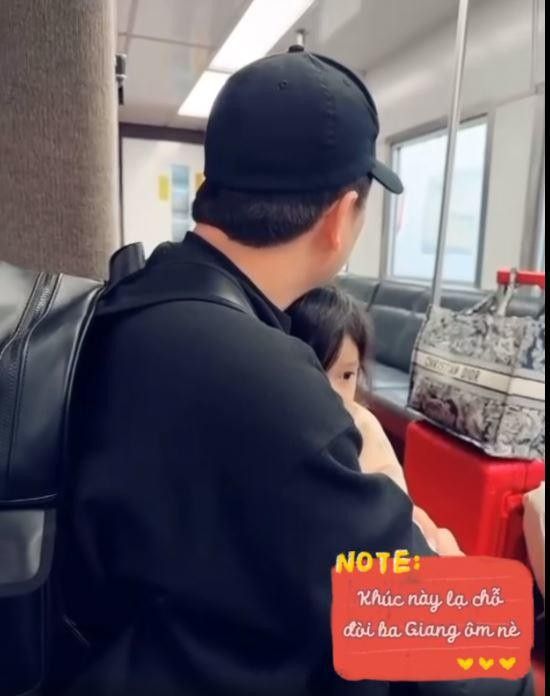 Trường Giang chia sẻ: "Lần đầu sang Mỹ nên cô ấy sợ dữ lắm nhưng ráng nhịn, chỉ biết ôm chặt ba Tí chứ không mè nheo tí nào. Còn không quên gặp ai cũng chào như lời ba dặn. Thương công chúa nhà tui quá đi". Qua đó có thể thấy, ngoài việc quấn quýt bố, bé Destiny còn là một cô bé vô cùng ngoan ngoãn, hiểu chuyện. Lần đang sang Mỹ trên một hành trình dài, cô nhóc lạ chỗ nên có phần nhút nhát hơn thường ngày nhưng không hề nhõng nhẽo, khóc lóc hay ăn vạ vô lý. Con còn biết chào hỏi mọi người như lời Trường Giang dặn.