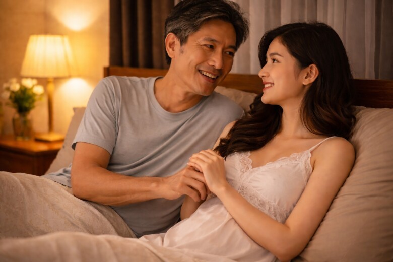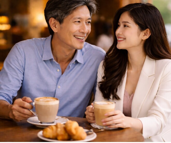 Tôi đồng ý, cũng không nghĩ gì nhiều. Lần đầu gặp, tôi khá bất ngờ. Anh ăn mặc trẻ trung, gọn gàng, phong thái đĩnh đạc. Nhìn qua, tôi đoán anh khoảng 40 tuổi là cùng. Đến khi hỏi thật, tôi suýt làm rơi ly nước: anh 52 tuổi. Tôi im lặng vài giây, còn anh thì cười: “Anh già vậy đó, em có chạy không?”. Không hiểu sao lúc đó tôi lại bật cười.