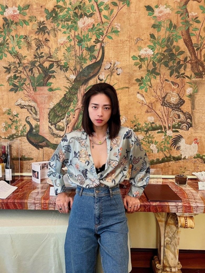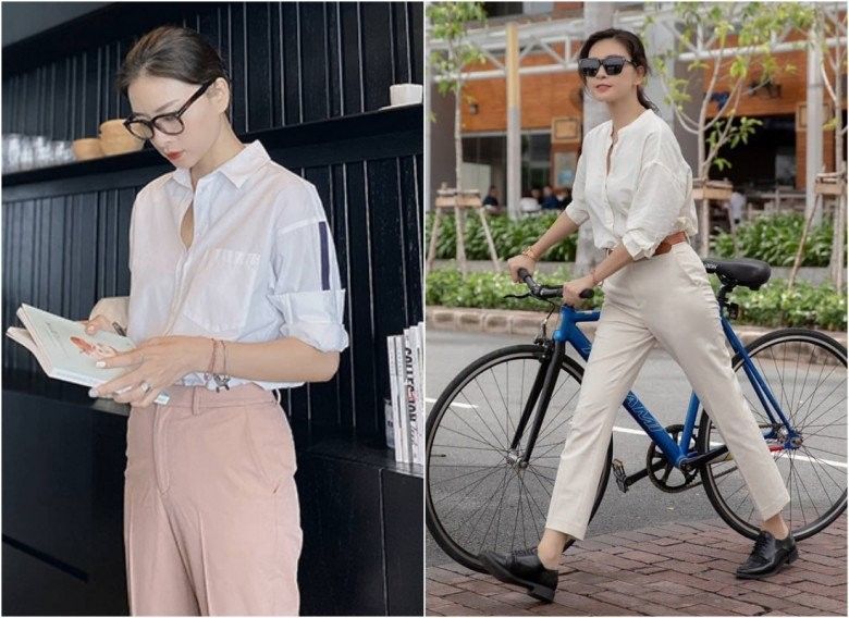 Thay vì mix&match cầu kì, Ngô Thanh Vân tuân theo công thức chỉ một chiếc sơ mi kiểu dáng basic kết hợp với quần âu hoặc jeans ống đứng là có ngay set đồ vừa đủ để đi muôn nơi.