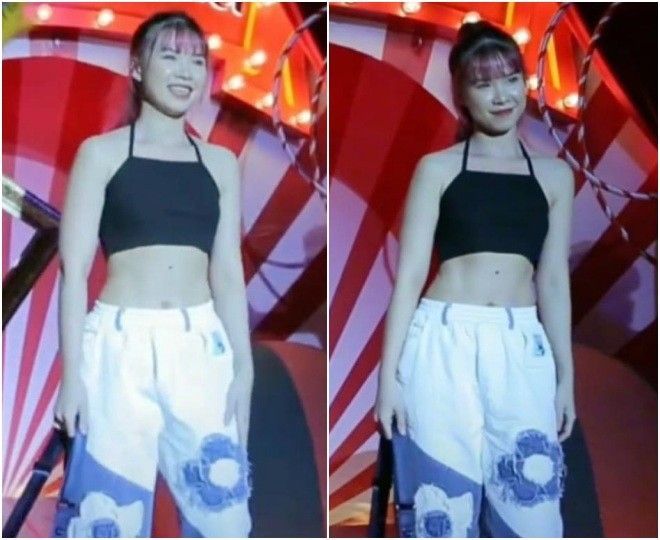 Xuất hiện cùng mái tóc nhuộm tím nổi bật và gương mặt không make up quá đậm, Khởi My trông vẫn trẻ trung và xinh xắn. Đáng chú ý là hình thể săn chắc của cô nàng được phô diễn hoàn toàn bởi chiếc áo croptop ngắn cũn, ôm sát.