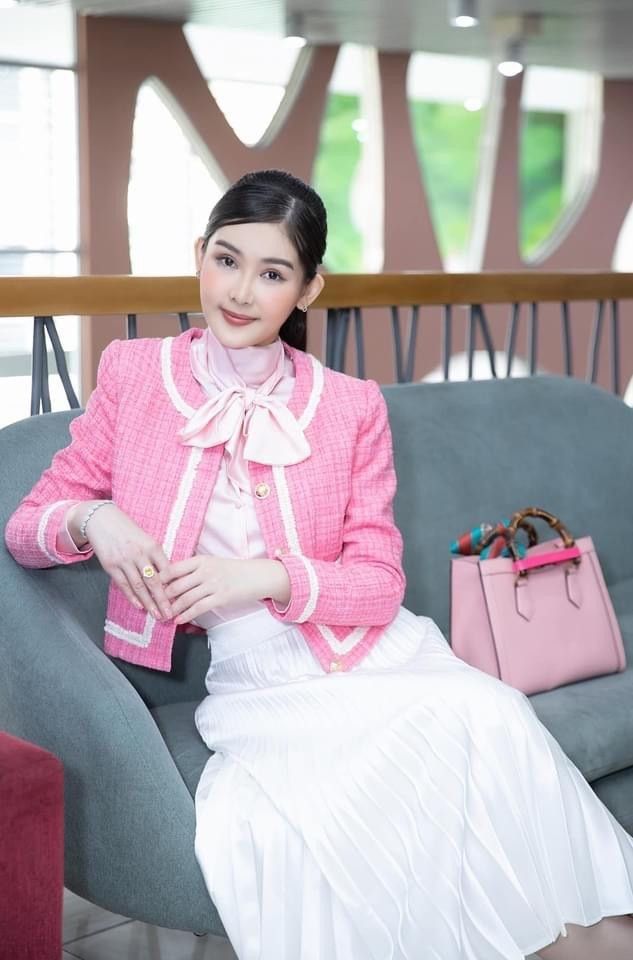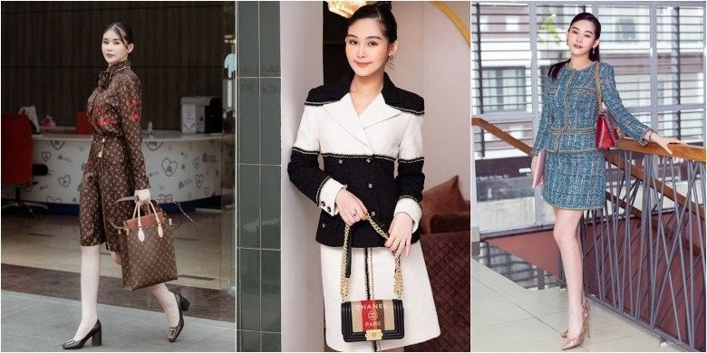 Ngoài ra, những mẫu váy ứng dụng mang hơi hướng thời trang công sở, Lê Âu Ngân Anh còn cập nhật các xu hướng mới cũng như luôn "dát" hàng hiệu trong mọi set đồ lên giảng đường.