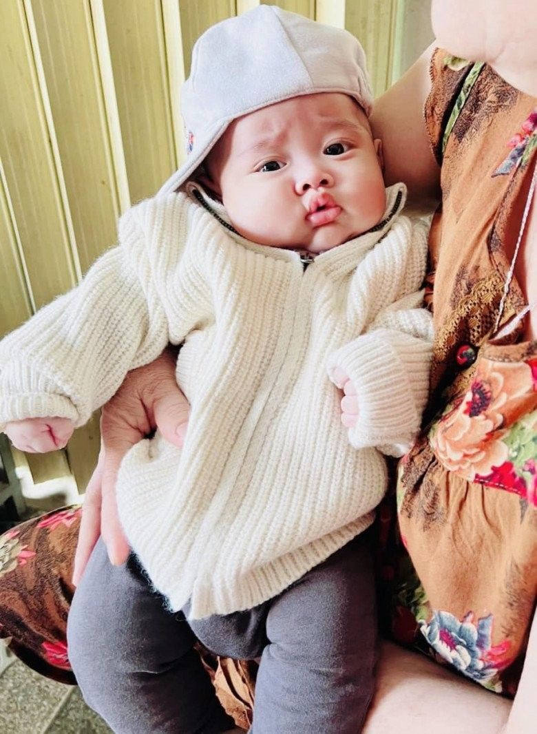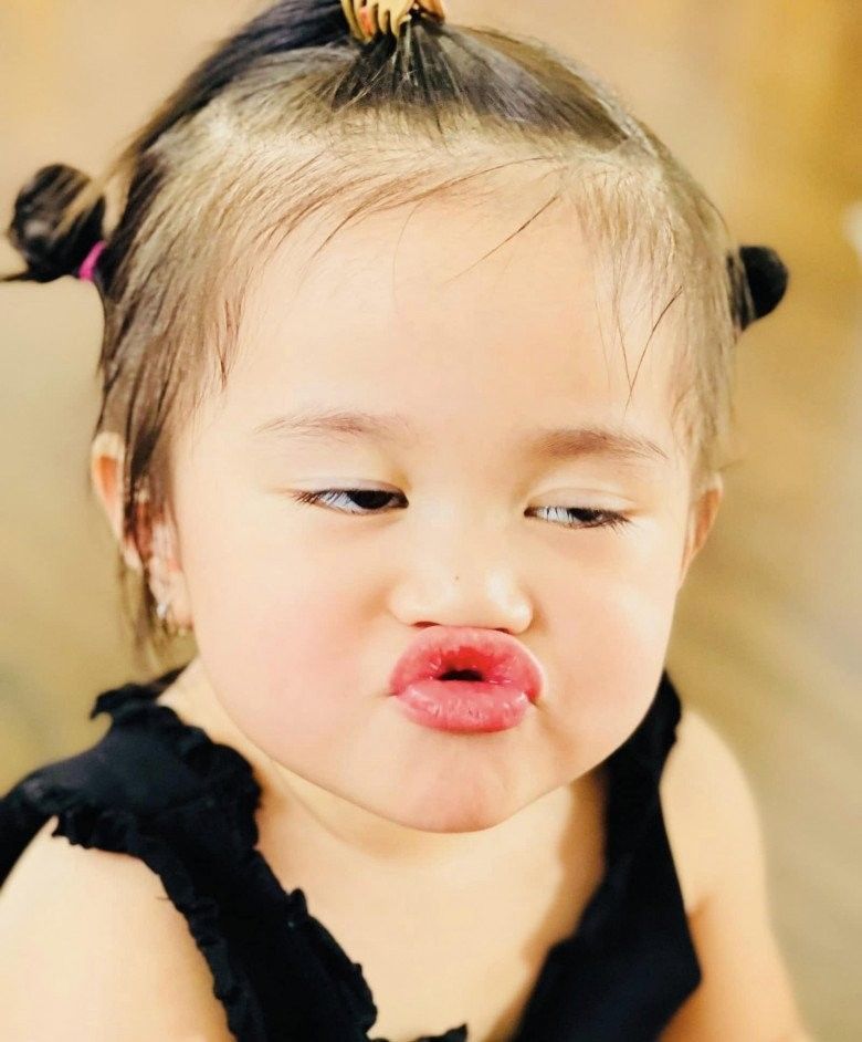 Mới đây, ông bố 3 con chia sẻ hình ảnh con trai út lên mạng xã hội kèm dòng trạng thái: "Cứu tui, cái môi có dấu hiệu nở ra rồi", khiến ai nấy đều phải bật cười. Quả thật, con trai Lê Dương Bảo Lâm trông giống hệt bản sao mini của bố, đặc biệt kế thừa đôi môi size đại đầy đặn cùng biểu cảm gương mặt hài hước.