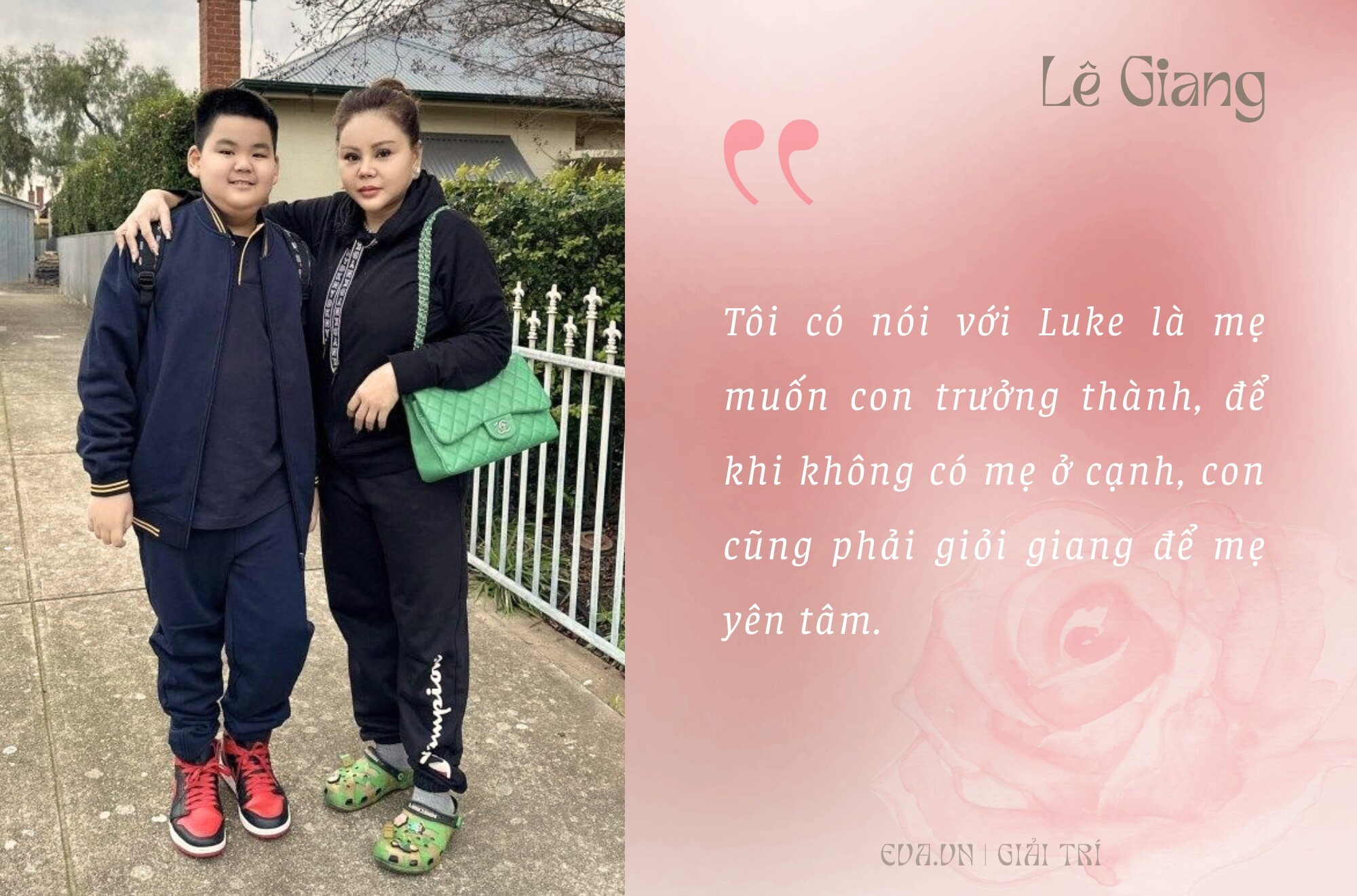 Luke đang bắt đầu lớn nên tôi muốn cho con tự lập. Tôi cũng lo ngại việc con trai khi xa mẹ sẽ buồn rồi nhớ mẹ. Nhưng tôi đã dặn con phải cố gắng, tôi có nói với Luke là mẹ muốn con trưởng thành, để khi không có mẹ ở cạnh, con cũng phải giỏi giang để mẹ yên tâm. Luke tuy còn nhỏ nhưng rất tình cảm, suy nghĩ sâu sắc và hiểu chuyện.