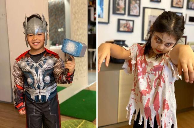 Jennifer Phạm từng chia sẻ hình ảnh hai con đón lễ Halloween tại nhà. Bé trai hóa thân thành Thần Sấm Thor và con gái lấy hình tượng xác sống trong các bộ phim về zombie.