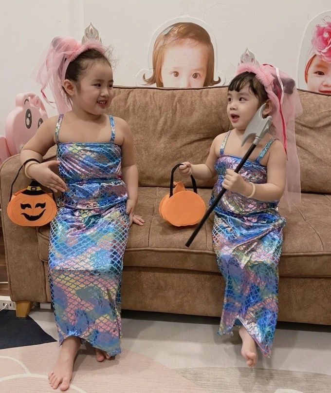 Hai con gái Hoài Lâm hóa trang thành những nàng tiên cá xinh đẹp, duyên dáng.
