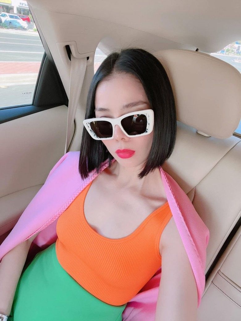 Bà mẹ một con còn yêu thích việc phối đồ đầy sắc màu rực rỡ những ngày cuối năm.
