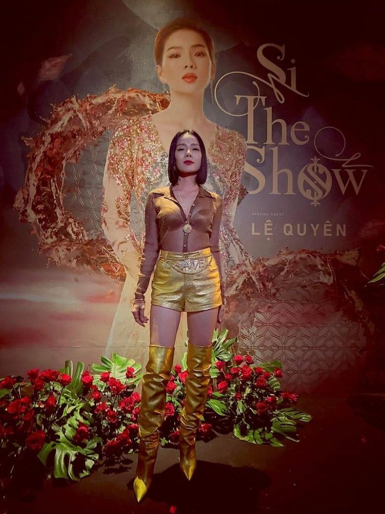 Rất may mắn là Lệ Quyên diện quần tất nên cô không có khoảnh khắc nào phản cảm trước hàng ngàn khán giả.