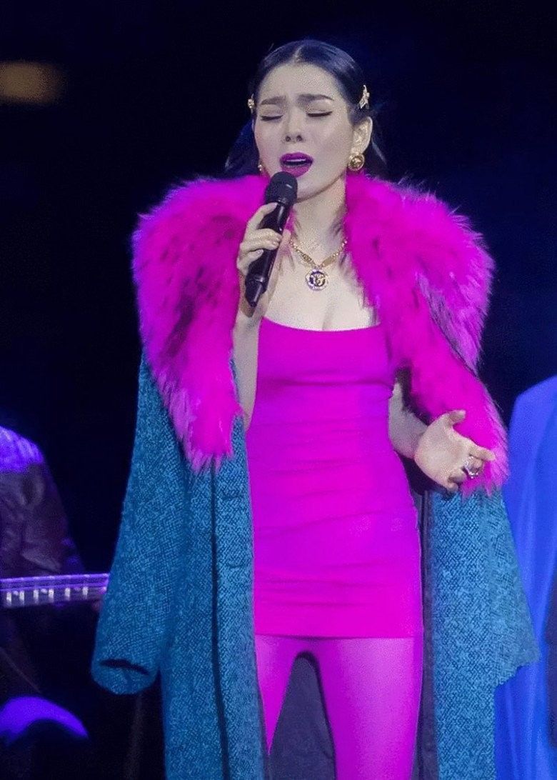 Trong buổi biểu diễn mới đây, Lệ Quyên xuất hiện với outfit màu neon sang chảnh kết hợp giữa váy bodycon, áo choàng lông cùng những phụ kiện xa hoa từ các nhà mốt lừng danh thế giới. Thế nhưng vì chiếc váy "hack" được đôi chân nuột nà có kích thước quá ngắn mà trong lúc di chuyển, Lệ Quyên làm cho phần váy bị giật lên phía trên để lộ ra những điểm nhạy cảm.