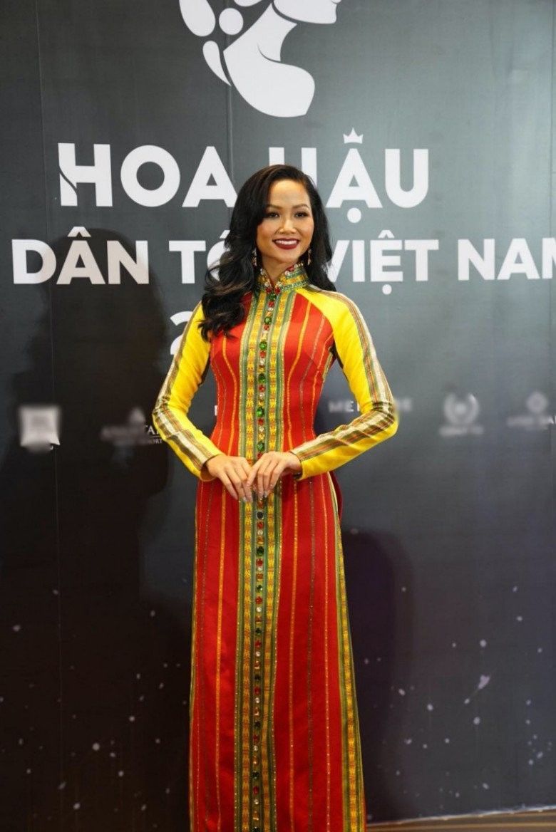 Có mặt tại thảm đỏ đêm chung kết Hoa hậu, trong khi Trương Ngọc Ánh chọn cho mình bộ váy dạ hội mang sắc xanh đen chủ đạo không chừa một chỗ hở, thì H'Hen Niê cũng xúng xính áo dài truyền thống đầy duyên dáng.