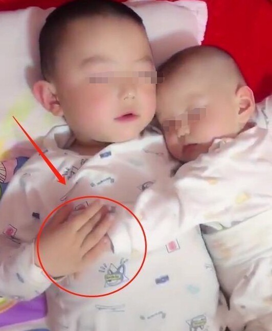 Không chỉ vậy, cậu anh trai còn bắt chước cả những cử chỉ quen thuộc của mẹ. Cậu đặt tay dưới gáy em trai, kê đầu để em nằm cho thoải mái, còn cậu em thì dựa sát vào anh mình. Điều khiến người mẹ xúc động nhất là ngay cả khi đã ngủ say, người anh vẫn nắm chặt tay em trai như một cách bảo vệ và che chở.