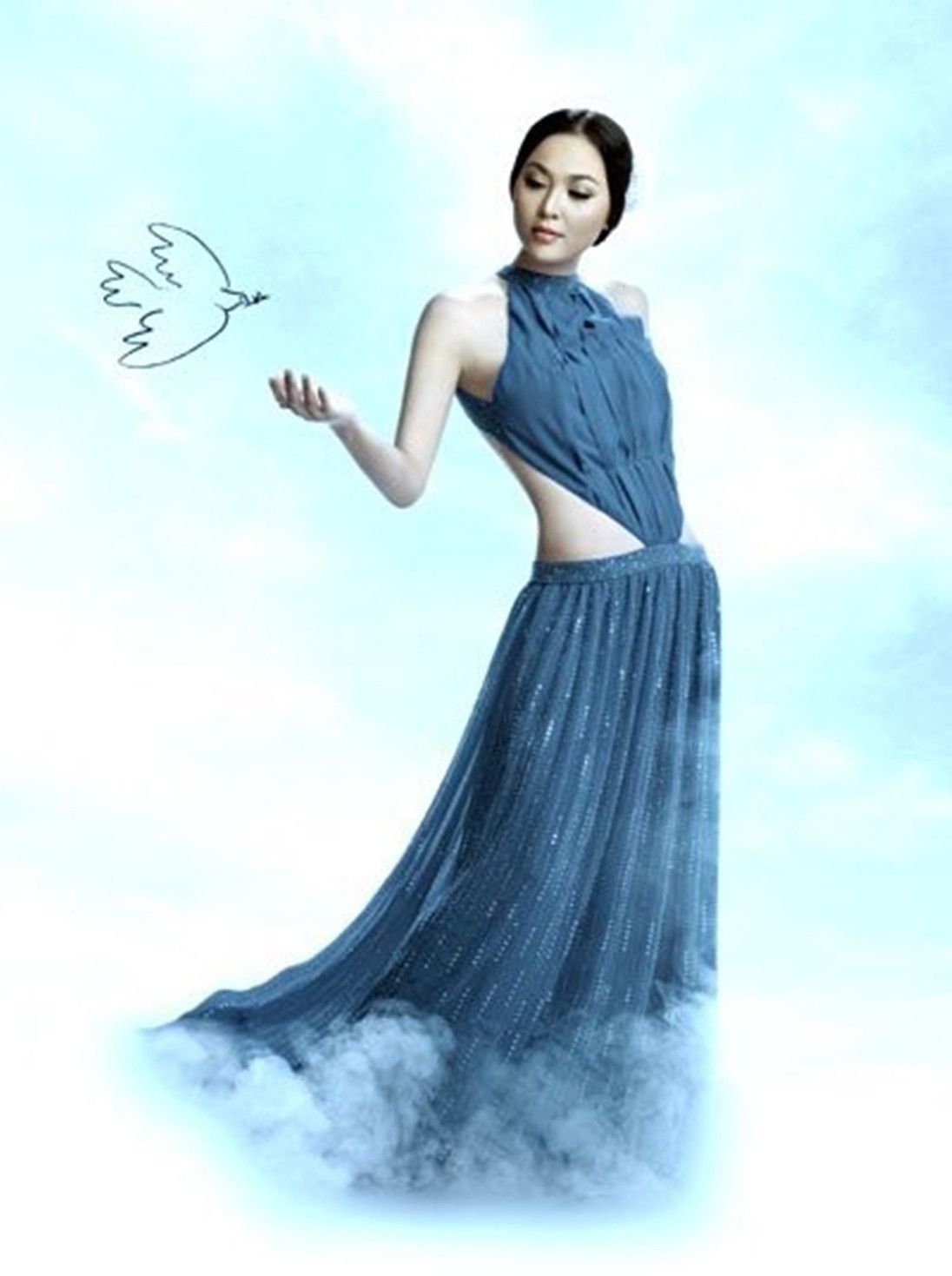 Phan Thu Ngân trong một concept chụp hình Beauty với phong cách trang điểm "mắt xanh mỏ đỏ" đặc trưng của năm 2002.