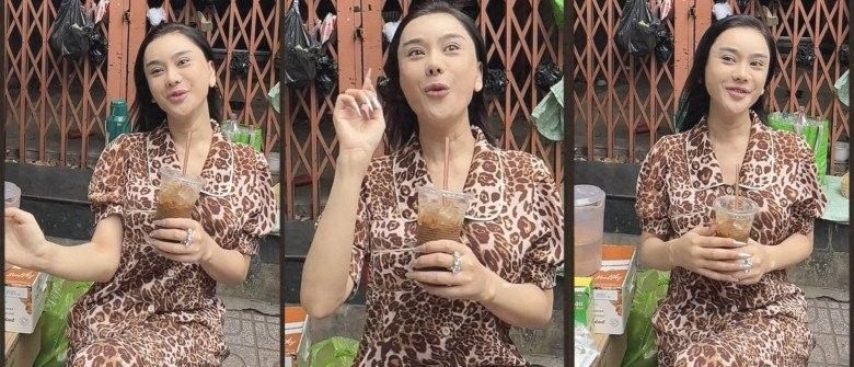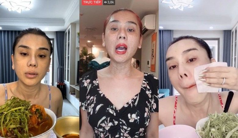 Không trang điểm, gương mặt Lâm Khánh Chi trở nên nhợt nhạt, nhiều nếp nhăn và thiếu sức sống.