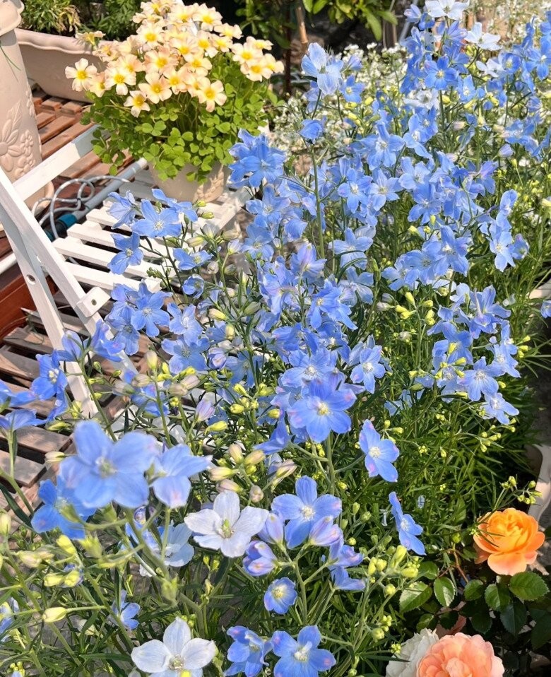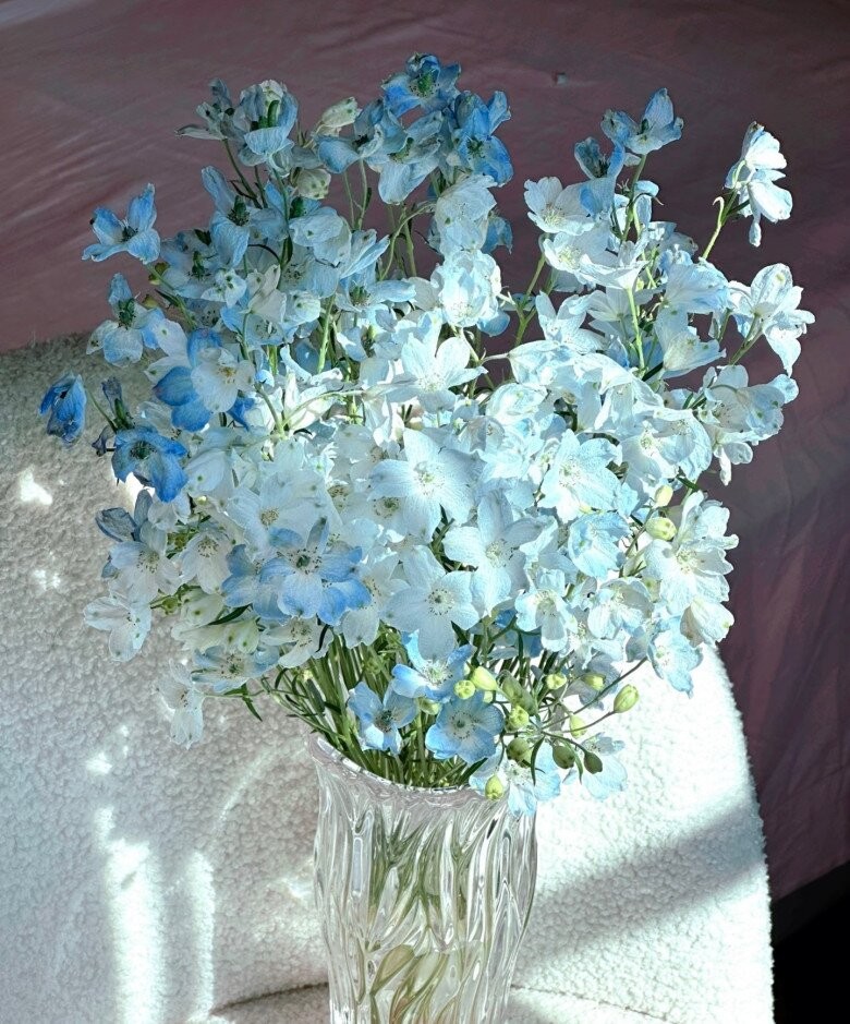 Hoa tuyết dung lam là một giống trong hoa tiểu phi yến (tên khoa học Delphinium grandiflorum). Giữa vô vàn giống tiểu phi yến khác nhau, đây là loại được yêu thích nhất bởi sắc xanh hoàn hảo của nó, vì không quá rực rỡ, cũng không trầm tối. Dù trồng trong vườn hay đặt ở ban công, tuyết dung lam luôn dễ dàng thu hút ánh nhìn ngay từ khoảnh khắc đầu tiên.