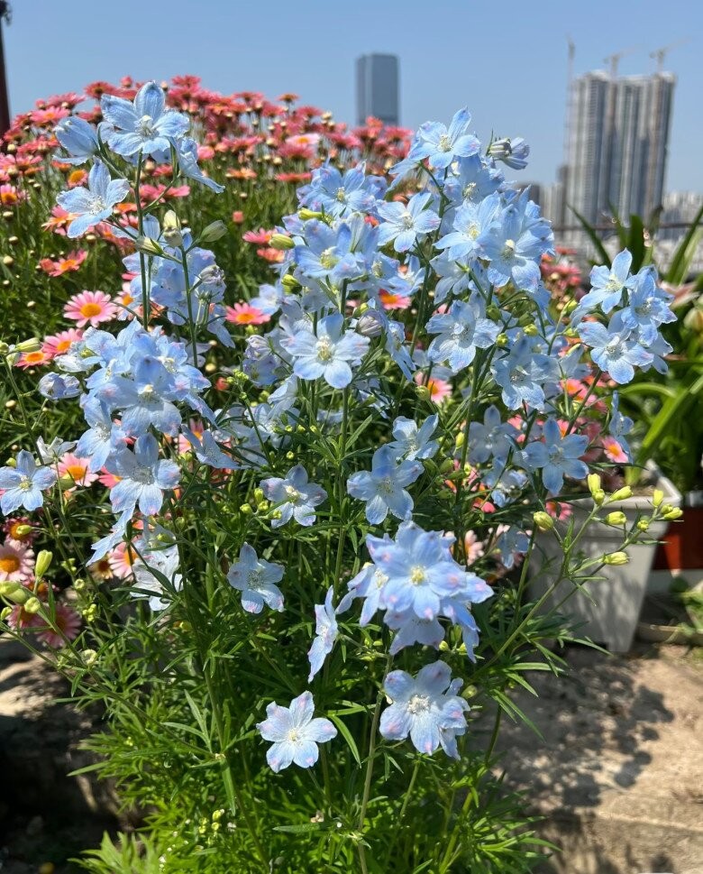 So với các giống phi yến hoa lớn có thể cao tới hơn 1 mét, giống hoa tiểu phi yến này nhỏ gọn và thân thiện với ban công hơn nhiều. Chỉ cần một chậu có đường kính khoảng 15 cm là đủ để cây phát triển, không chiếm diện tích nhưng vẫn nâng tầm thẩm mỹ cho không gian sống.
