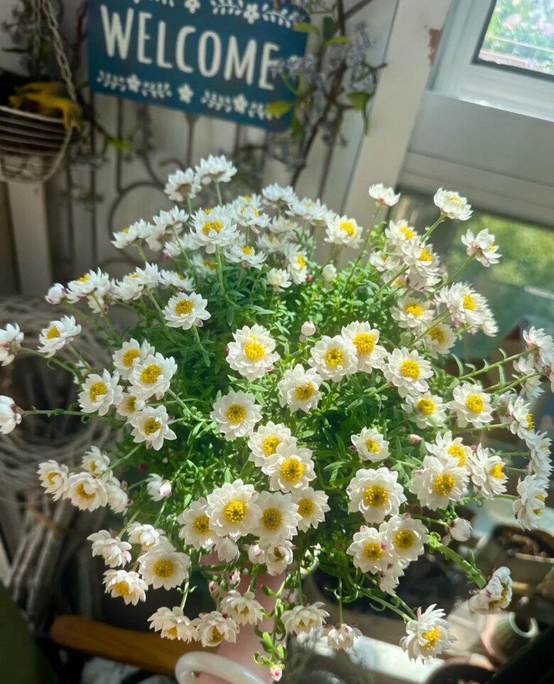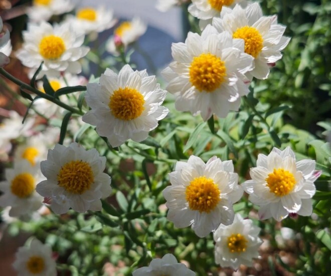Loài hoa này là cúc mặt trời hay còn gọi là cúc tia nắng, tên khoa học Rhodanthe anthemoides, tên tiếng Anh là Chamomile Sunray, được trồng nhiều tại Úc và Nhật Bản. Những năm gần đây, đây là một trong những loài hoa cảnh rất được ưa chuộng trong giới làm vườn.