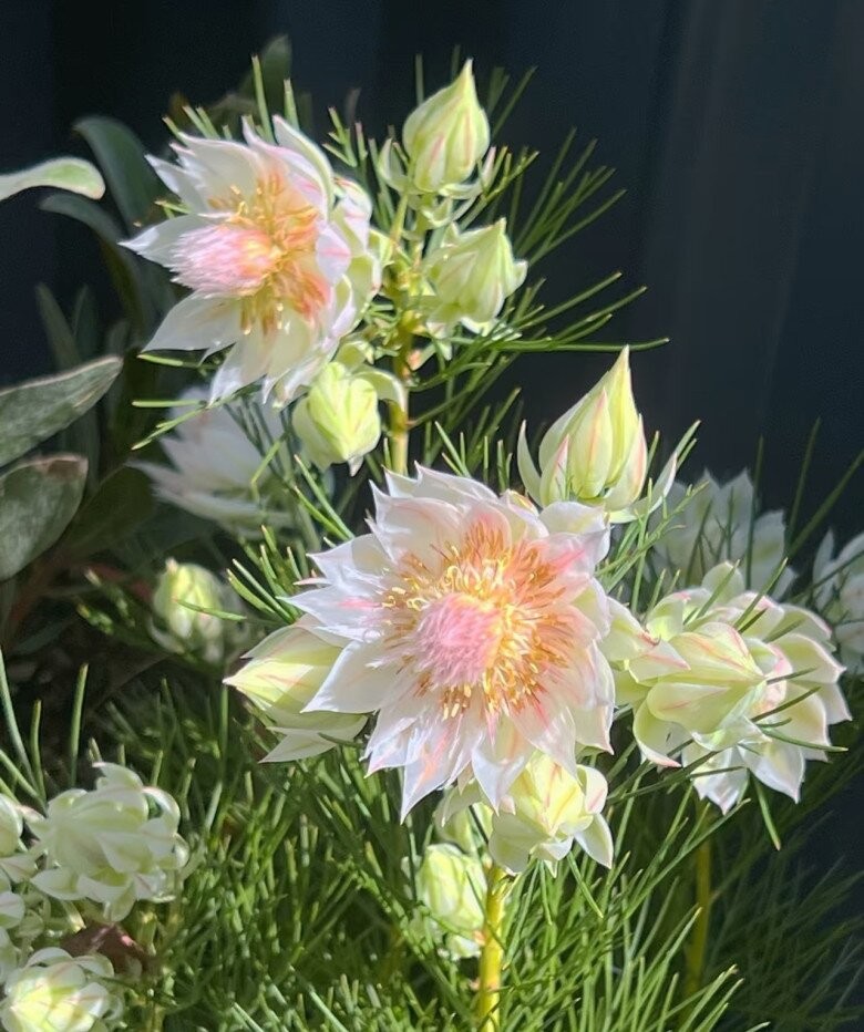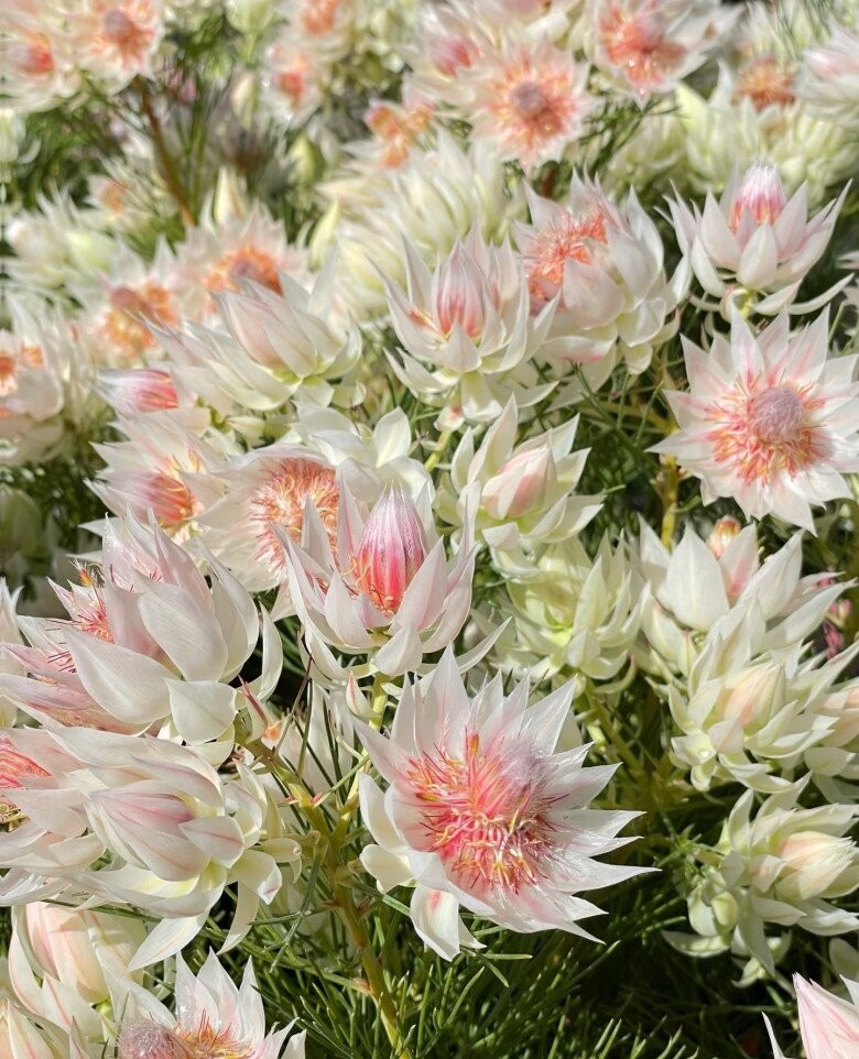 Hoa cô dâu đỏ mặt hay còn gọi là hoa cô dâu mắc cỡ, tên tiếng Anh là Serruria florida, là giống hoa cảnh mới nổi vào những năm gần đây và nhanh chóng thu hút sự chú ý của giới yêu hoa. Thực tế, loài hoa này đã được ưa chuộng ở nước ngoài từ lâu. Chỉ cần lướt qua mạng xã hội, những người mê hoa chắc hẳn đã từng thấy nó.