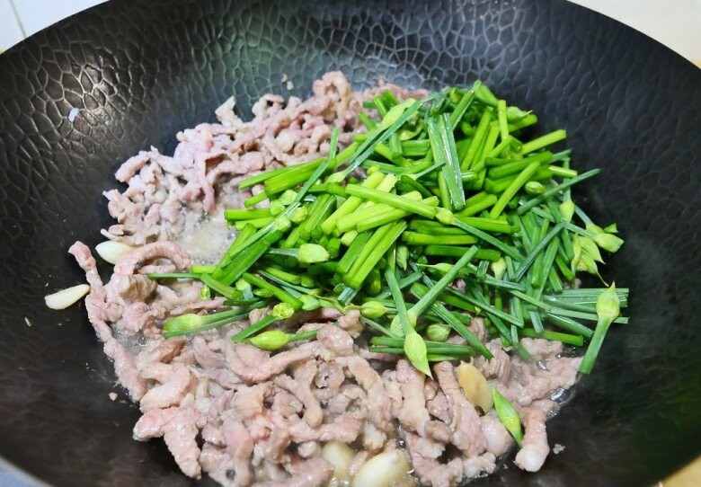 Bước 4: Xào cùng hẹ