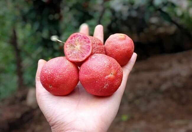So với chanh thường, chanh đào có hình dáng không quá khác biệt nhưng vẫn mang những nét đặc trưng dễ nhận biết. Quả có kích thước vừa phải, vỏ hơi sần và khi chín chuyển sang màu hồng đỏ bắt mắt. Phần ruột bên trong cũng có sắc hồng nhạt, mọng nước và tỏa hương thơm dịu nhẹ. Nhờ sinh trưởng trong điều kiện khí hậu mát mẻ của vùng núi cao, chanh đào rừng thường có vị chua thanh, không gắt, kết hợp cùng mùi thơm tự nhiên rất đặc trưng.