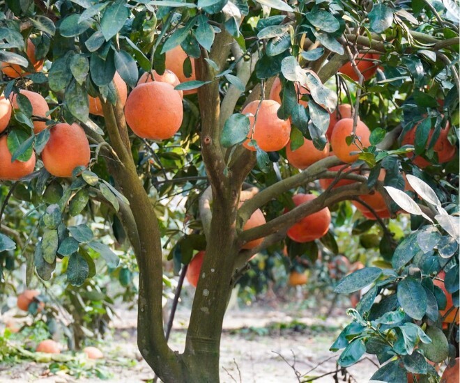 Vào khoảng tháng 11 âm lịch, khi tiết trời dần chuyển lạnh cũng là lúc những vườn bưởi nơi đây bước vào mùa thu hoạch rộn ràng nhất. Trên các triền đồi thoai thoải, từng quả bưởi tròn căng, được bọc giấy cẩn thận, treo lơ lửng giữa tán lá xanh, tạo nên khung cảnh vừa trù phú vừa nên thơ. Sắc vàng xen lẫn ánh đỏ của bưởi báo hiệu một mùa Tết đang đến rất gần.