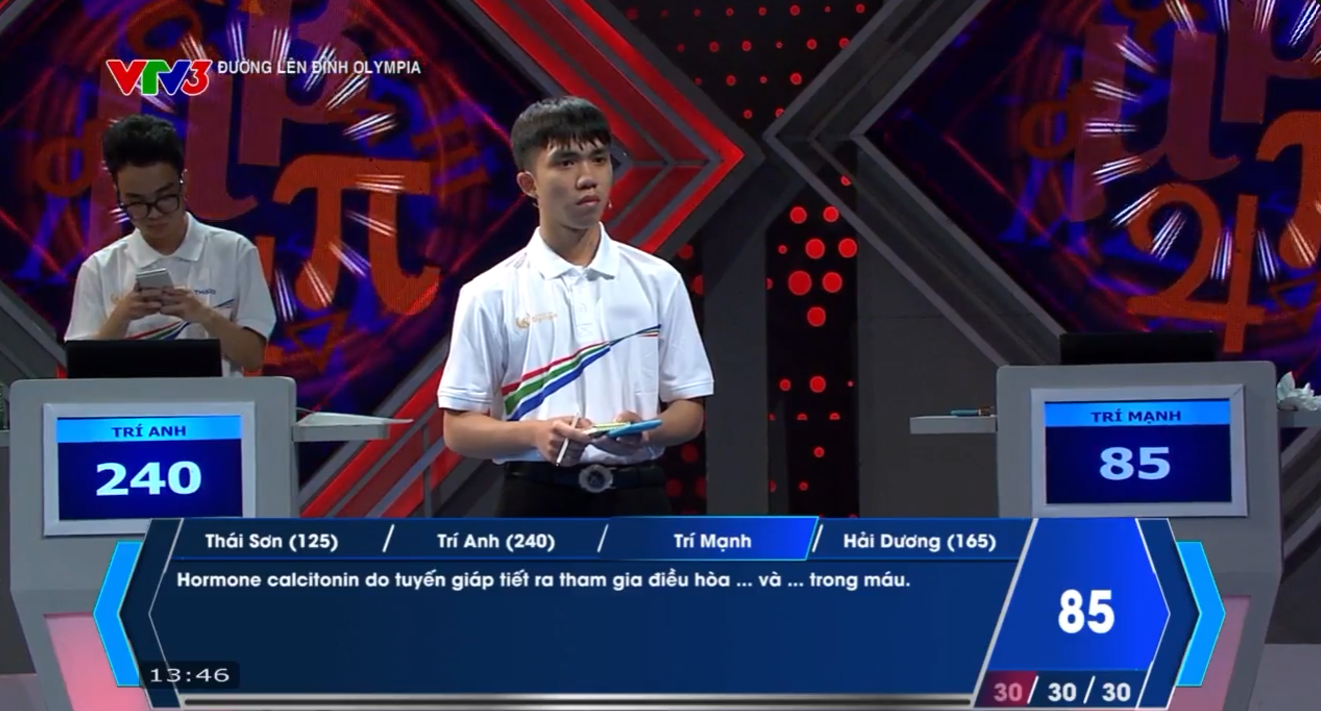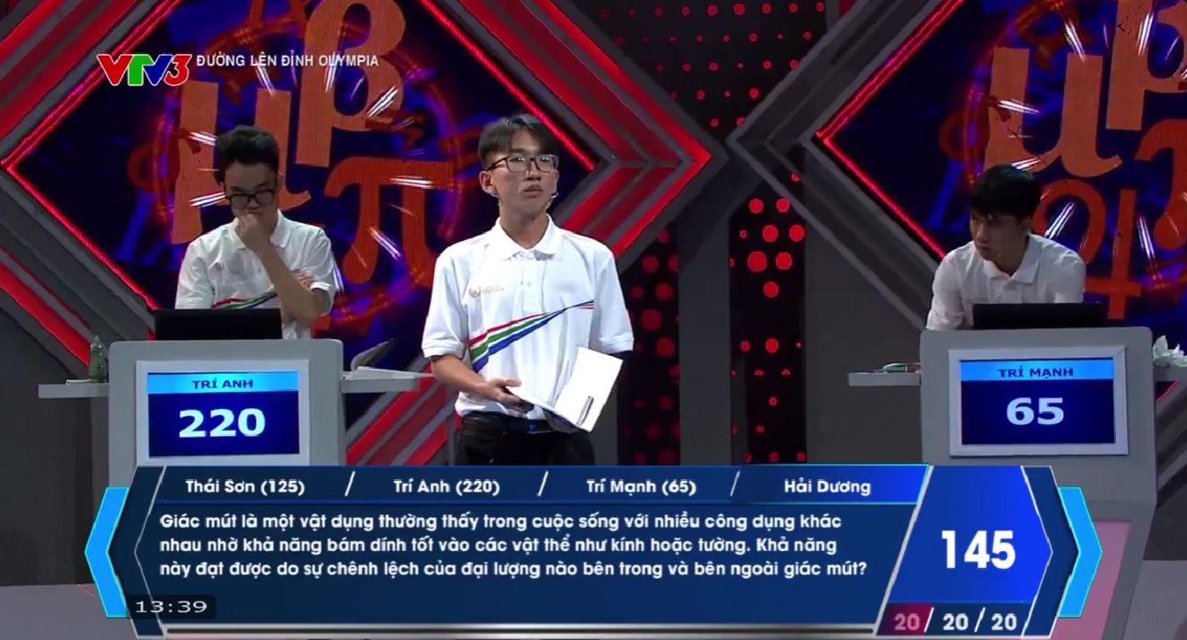 Trí Anh là người Về đích đầu tiên với 1 câu trả lời đúng, nâng tổng số điểm lên 220.