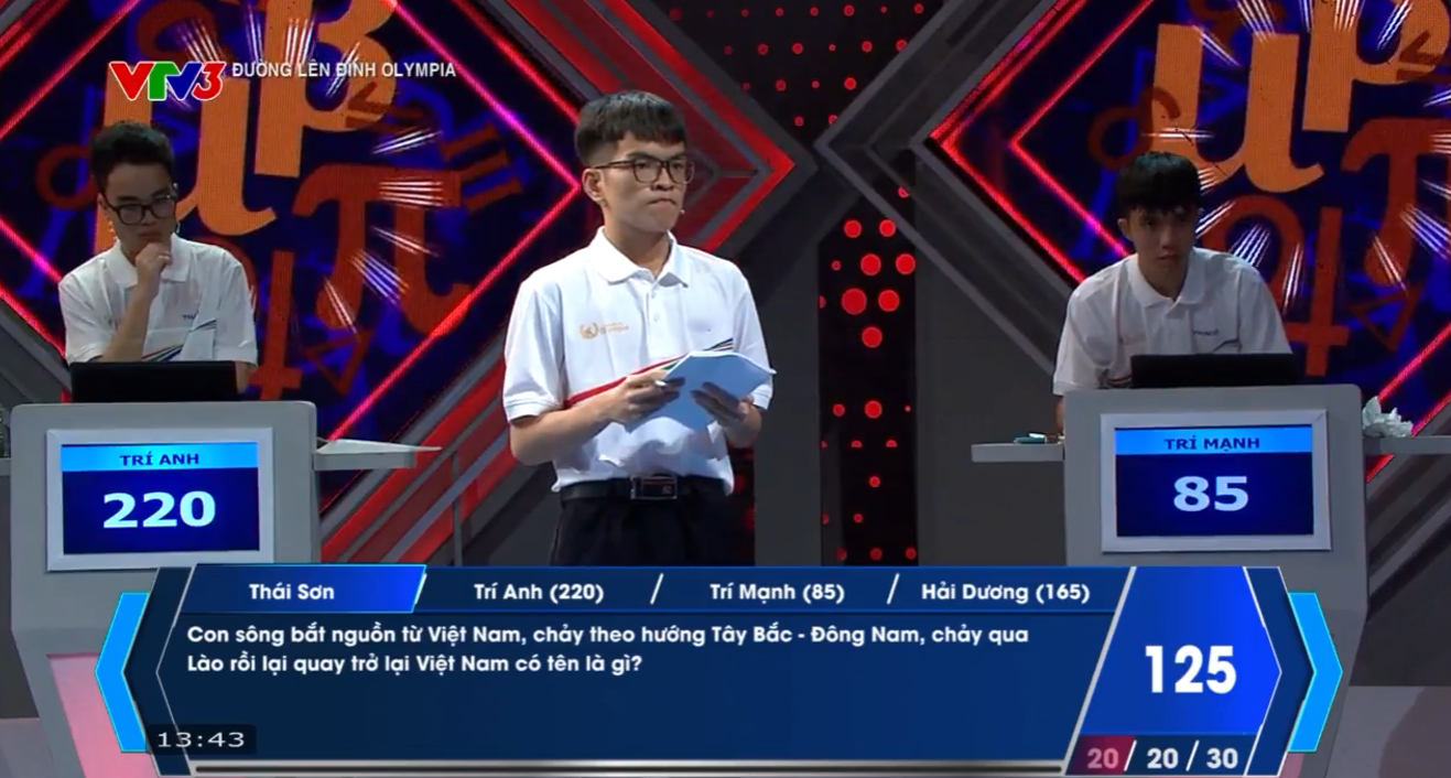 Thái Sơn cũng đưa ra 1 đáp án chính xác, nhưng lại để Trí Anh lấy đi 20 điểm ở 1 câu trả lời đúng. Kết thúc lượt thi của mình, Thái Sơn có 125 điểm.