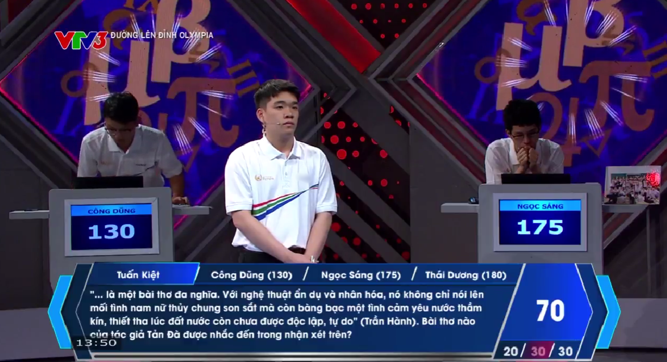 Người thứ 2 Về đích là Ngọc Sáng với 1 câu trả lời đúng, nâng tổng số điểm lên 175.