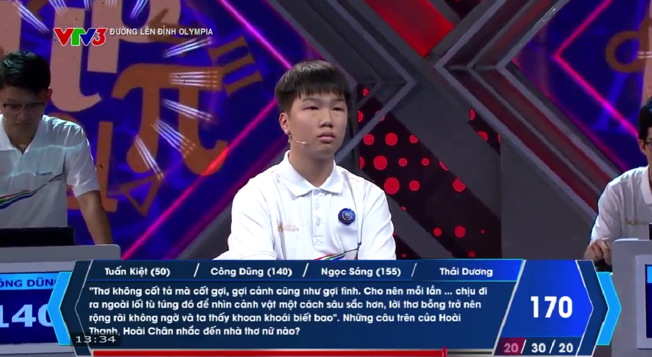 Trận thi tháng 3 quý 2 Đường lên đỉnh Olympia 2026 diễn ra lúc 13h ngày 19/4 với sự tham gia tranh tài của bốn gương mặt xuất sắc: Dương Tuấn Kiệt (THPT Tiên Lãng - Hải Phòng), Trần Công Dũng (THPT chuyên Hà Tĩnh - Hà Tĩnh), Nguyễn Ngọc Sáng (THPT chuyên Sơn La - Sơn La) và Lý Thái Dương (THPT chuyên Hùng Vương - Phú Thọ).