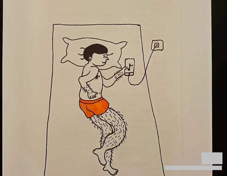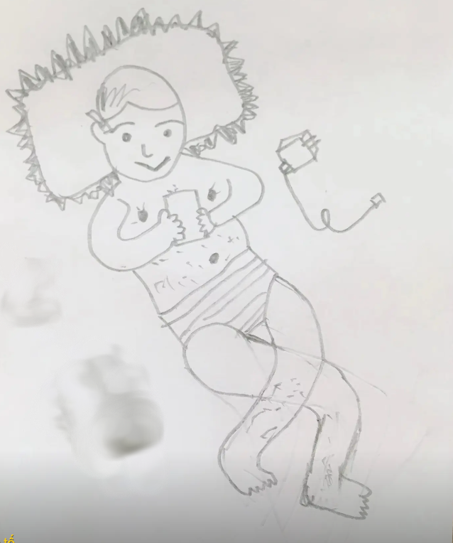 Trong bức vẽ, đứa trẻ diễn tả lại hình ảnh bố nằm trên giường, tay lúc nào cũng cầm điện thoại nhìn chăm chăm. Điều này khiến người mẹ cảm thấy lo lắng và khó chịu. Cô cho biết bản thân đã nhiều lần nhắc nhở chồng về việc này, lý do là nó có thể khiến con bắt chước, học theo thói quen xấu, nhưng dường như chồng chỉ hứa hẹn chứ không được giữ.