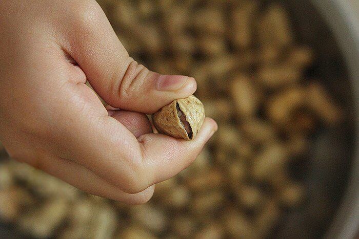 - Rửa sạch lạc nhiều lần, bóp nhẹ cho vỏ hơi tách.