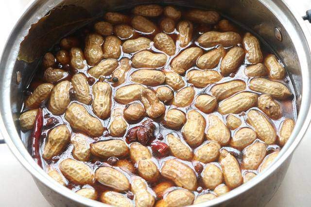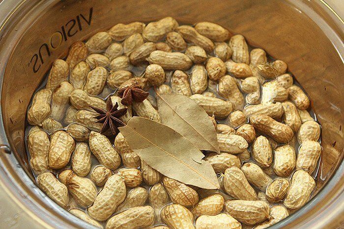 Đây là bí quyết tạo nên sự khác biệt. Thay vì luộc ngay, hãy nấu một nồi nước gia vị gồm muối, tiêu, hành, gừng, quế, hoa hồi, lá nguyệt quế và ớt khô. Khi nước sôi, cho lạc vào ngâm từ 1-2 tiếng.