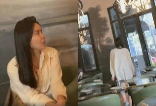Hành động rời ghế, quay lưng đi vào bên trong khi thấy chị gái quay video của Lưu Hương Giang gây chú ý.