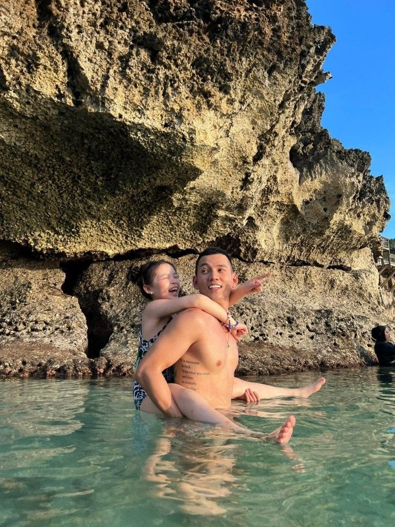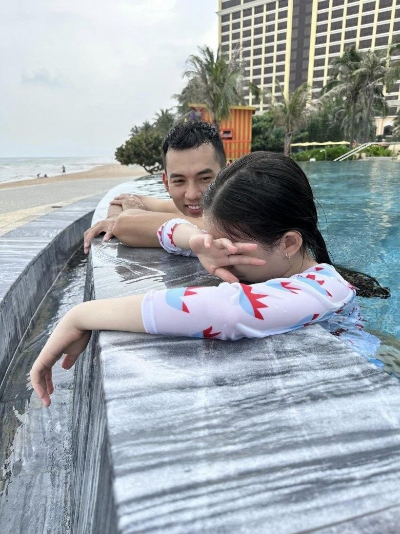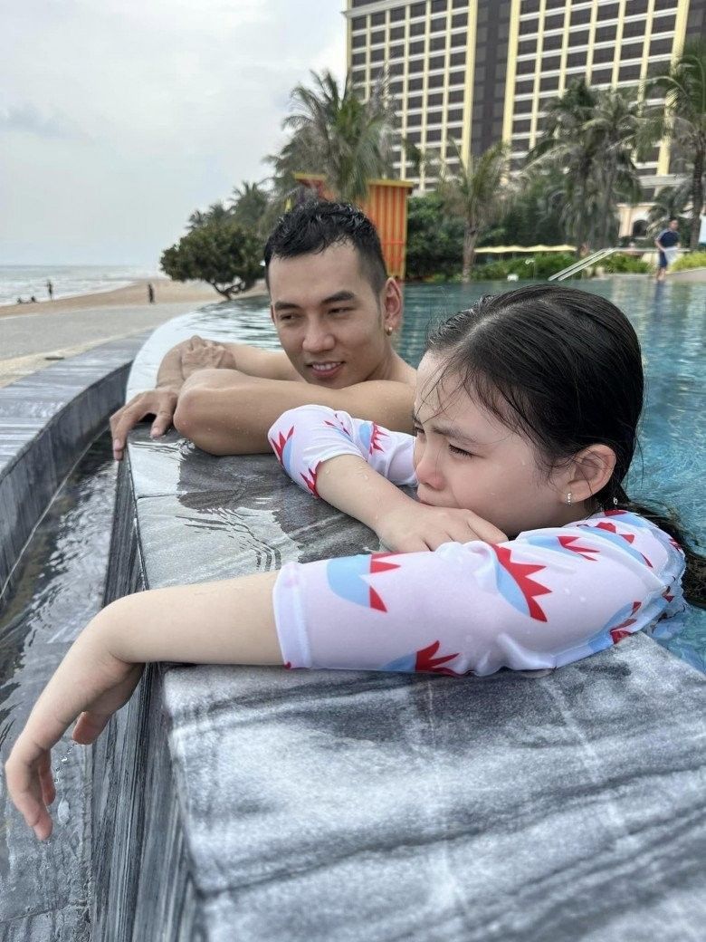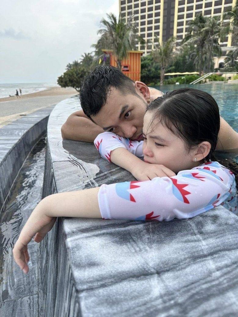 Thật ra tôi hơi sợ con nít, bé nào mà quậy quá mình không chịu nổi. May mắn là Mia vừa xinh xắn, dễ thương lại ngoan ngoãn nữa. Sau đó thì tụi đưa con xuống khu vui chơi, đi ăn rồi lại đi mua sắm. Trinh đi mua sắm, tôi giữ Mia. Sau đó con khóc đòi mẹ, tôi dỗ rồi ẵm bé đi kiếm Trinh. Chỉ duy nhất lần đó con khóc, vì có lẽ mới gặp lần đầu và con nhớ mẹ. Những lần sau đó tôi với Mia thân rồi thì con không khóc nữa".