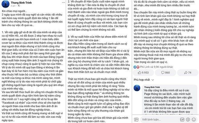 Trịnh Thăng Bình đăng bài viết thanh minh, xin lỗi sau khi vướng ào ồn ào với Hiền Hồ.