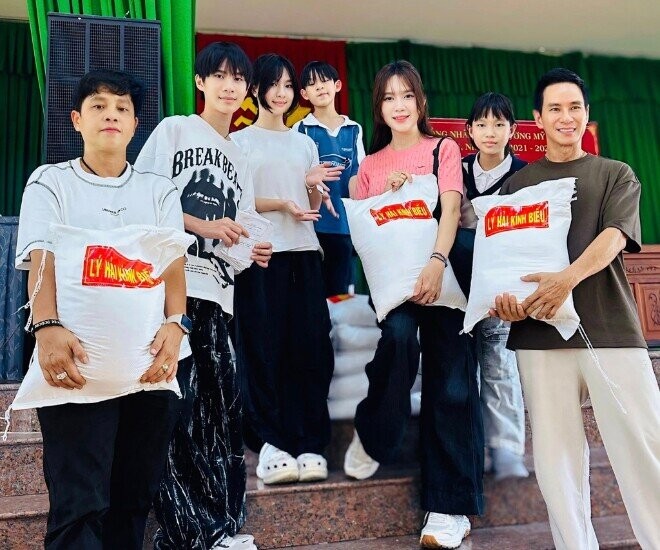 Lý Hải và Minh Hà đưa các con về quê làm từ thiện.