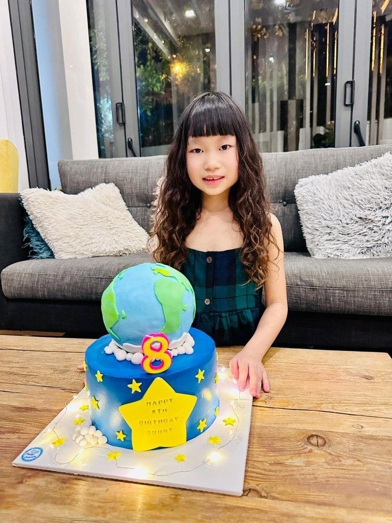 Vợ nam ca sĩ cho biết, tại bữa tiệc này, vợ chồng cô không phải bỏ ra bất kì đồng tiền nào để tổ chức cho con vì không gian chính là ngôi nhà ấm áp của cả gia đình đã đủ đẹp rồi, chiếc bánh kem hình trái đất đơn giản nhưng màu sắc bắt mắt là do một người bạn của vợ chồng tặng cho bé Sunny, chiếc váy hai dây màu xanh mà Sunny mặc đồng bộ với cả 5 thành viên còn lại của gia đình là quần áo mới nhưng cũng được một người bạn tài trợ.