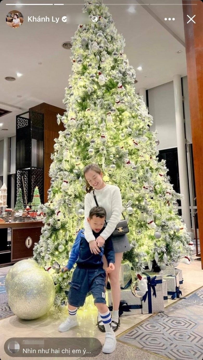 Ít giờ trước trên trang cá nhân, Ly Kute đăng tải hình ảnh cô cùng với con trai chụp ảnh Giáng sinh bên cây thông Noel. Trong ảnh, hai mẹ con tạo dáng nhí nhảnh, trong mắt toát lên rõ niềm hạnh phúc. Khá lâu rồi Ly Kute mới khoe ảnh bé Khoai Tây nên bài đăng lần này nhanh chóng thành tâm điểm.