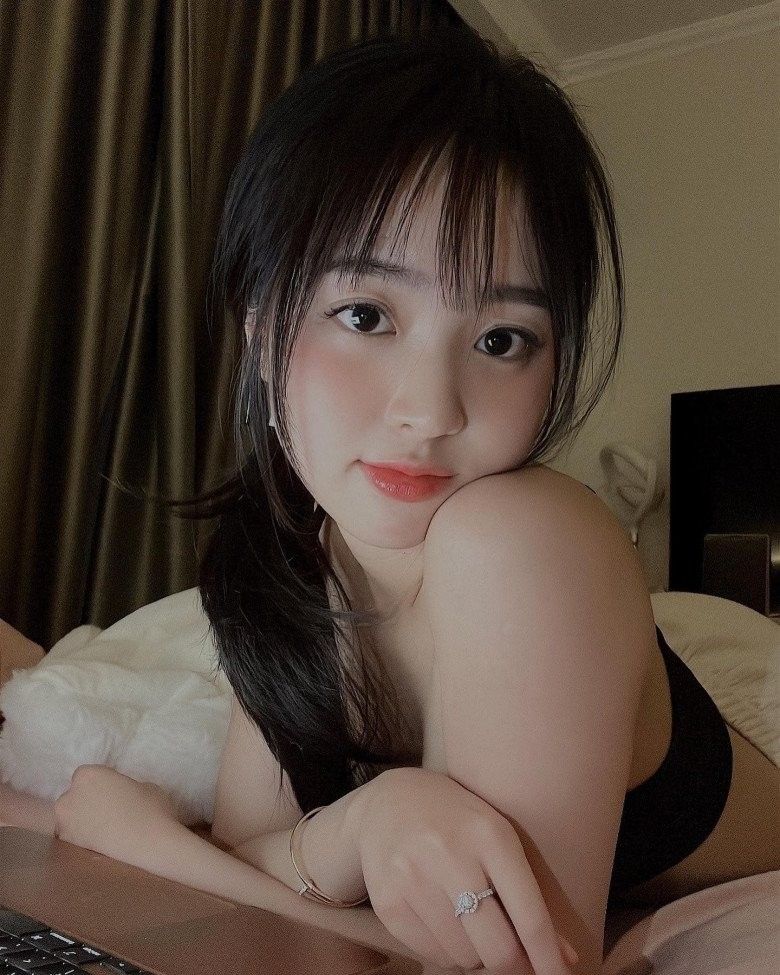 Phương Anh sở hữu nước da trắng hồng, gương mặt baby và chiếc má lúm đặc trưng thường xuyên xuất hiện với những chiếc áo 2 dây đôn đẩy ngực đầy.