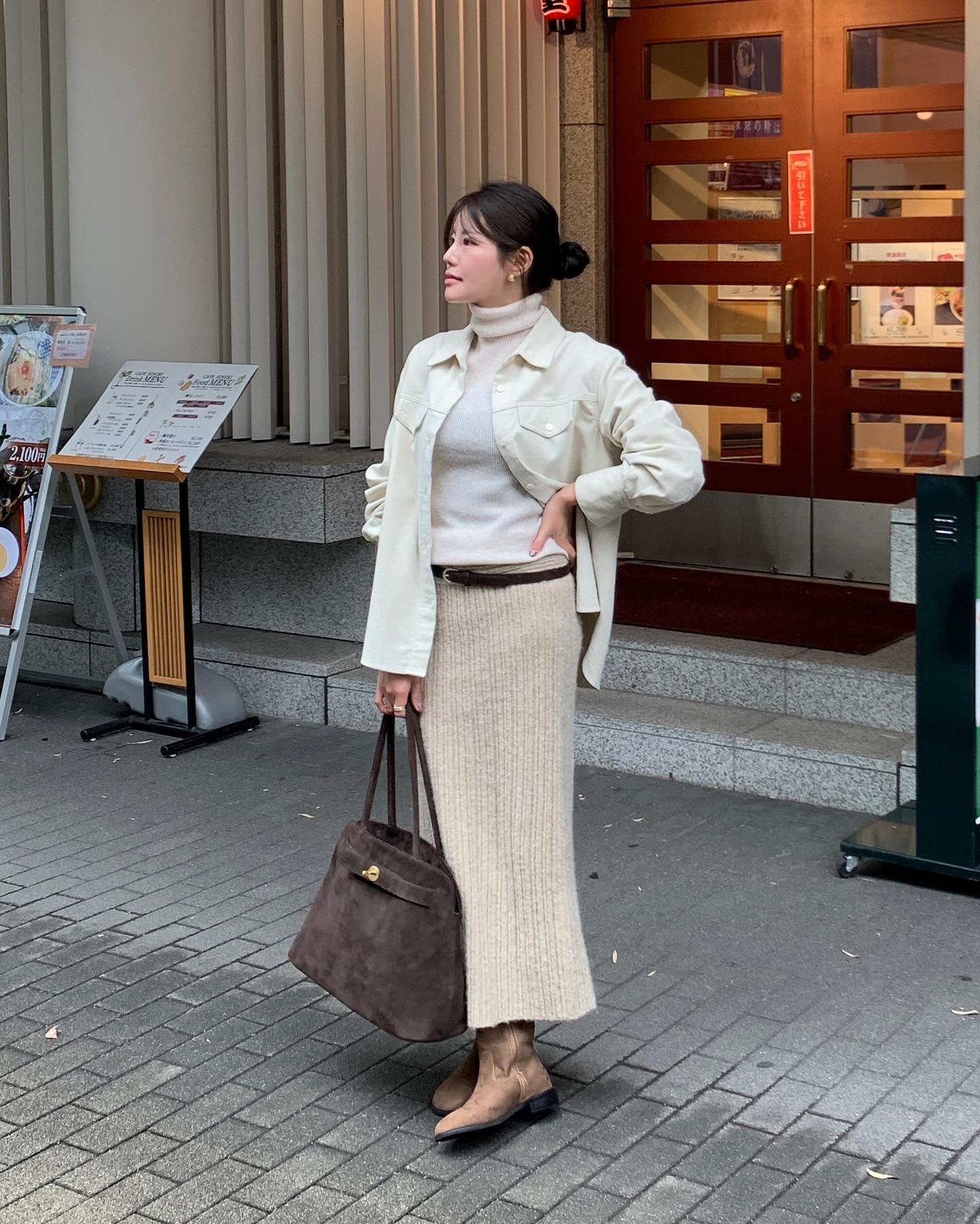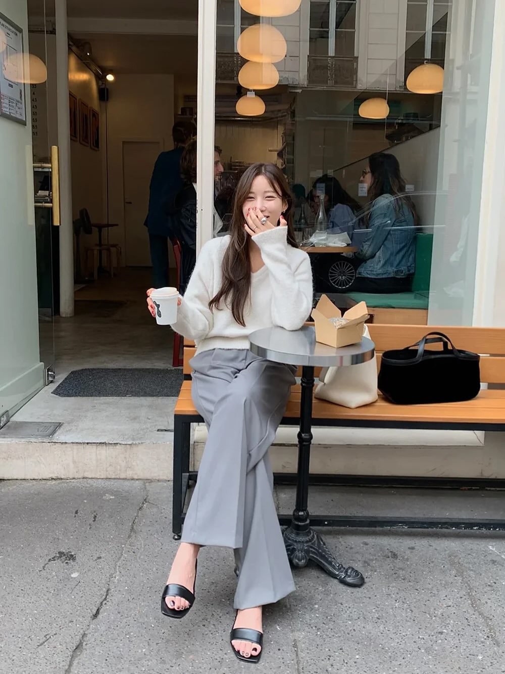 Để tránh cảm giác nặng nề, chị em nên chọn áo len mỏng, màu sắc nhã nhặn và chân váy có độ dài vừa phải. Khi sơ vin nhẹ hoặc chọn áo len dáng lửng, outfit sẽ trông cao ráo và thanh thoát hơn. Đây là công thức vừa phù hợp đi làm, vừa dễ áp dụng cho các hoạt động sau giờ làm.