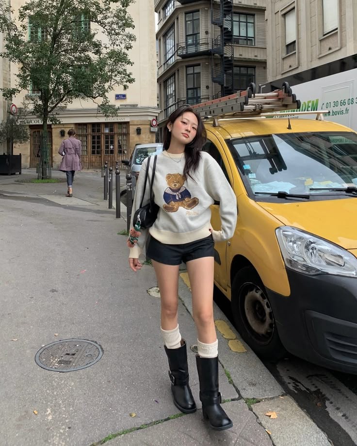 Khi kết hợp với váy ngắn, boots cao cổ tạo nên sự tương phản thú vị giữa nét nữ tính và cá tính. Đây là cách phối đồ được nhiều fashionista ưa chuộng để tạo điểm nhấn cho outfit. Ngoài ra, boots còn giúp tổng thể trở nên thời thượng và nổi bật hơn. Chỉ cần chọn thiết kế phù hợp, bạn đã có thể biến set đồ đơn giản thành một outfit đầy phong cách.