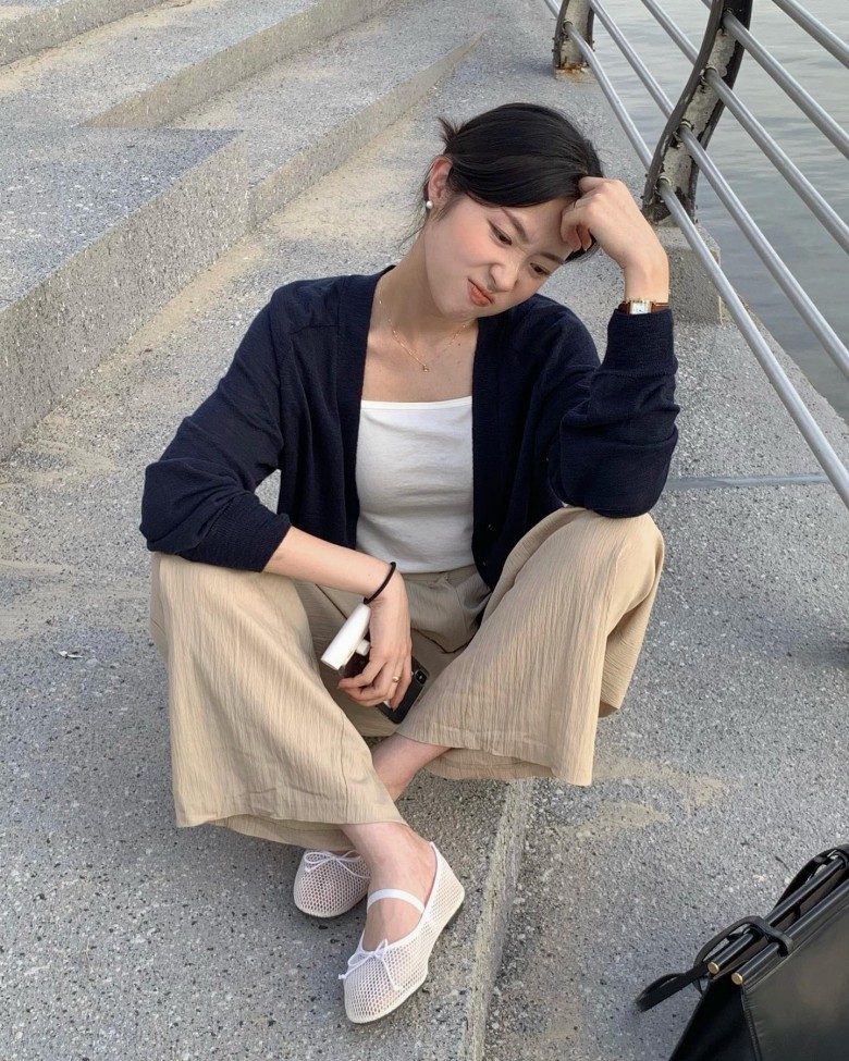 Phối nhiều chất liệu khác nhau trong cùng outfit giúp đồ sáng màu không bị phẳng. Sự tương phản nhẹ giữa vải lụa, cotton hay denim tạo cảm giác tinh tế.