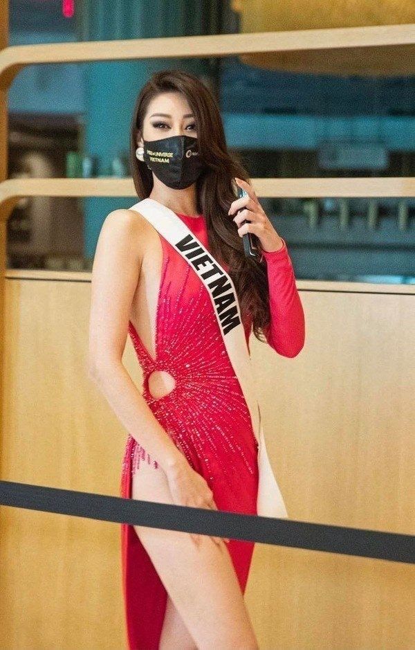 Với mẫu váy xẻ tà cao và dễ bị paparazzi soi rọi, Khánh Vân phải giữ tà váy từng bước một khi di chuyển.