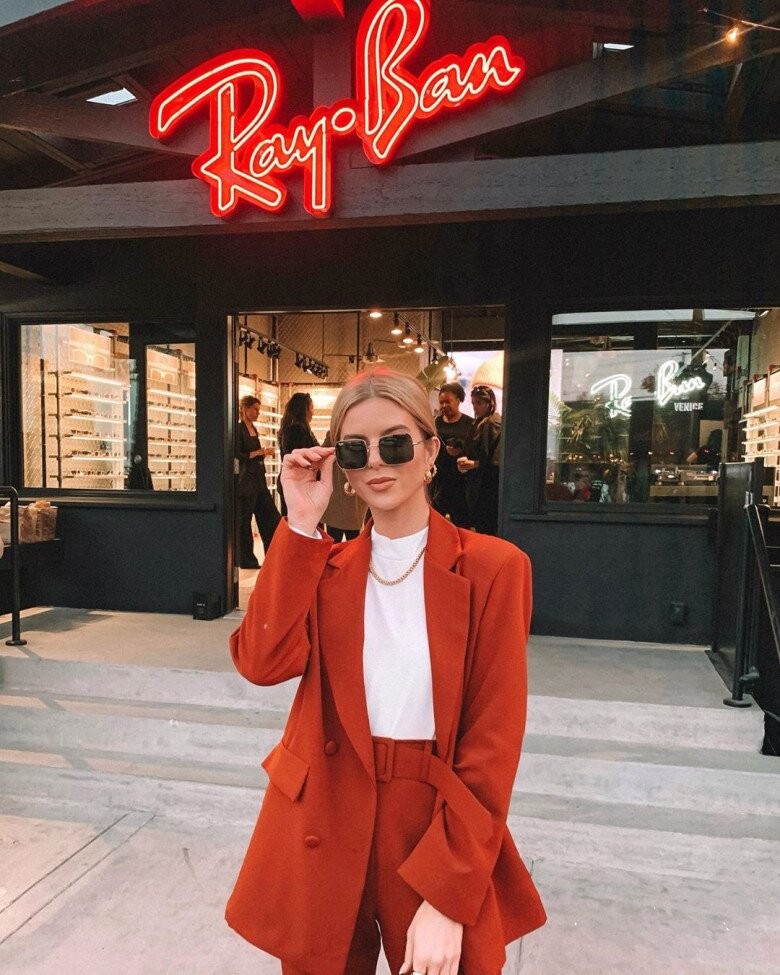 Về thời trang, sắc đỏ cam nên được tiết chế tinh tế: áo len, sơ mi hay chân váy đỏ cam phối cùng quần trắng sẽ vừa nổi bật vừa hài hòa. Đi làm có thể chọn áo khoác đỏ cam để tạo điểm nhấn; còn khi hẹn hò, túi xách, giày cao gót hay son môi đỏ cam là đủ để thu hút ánh nhìn.