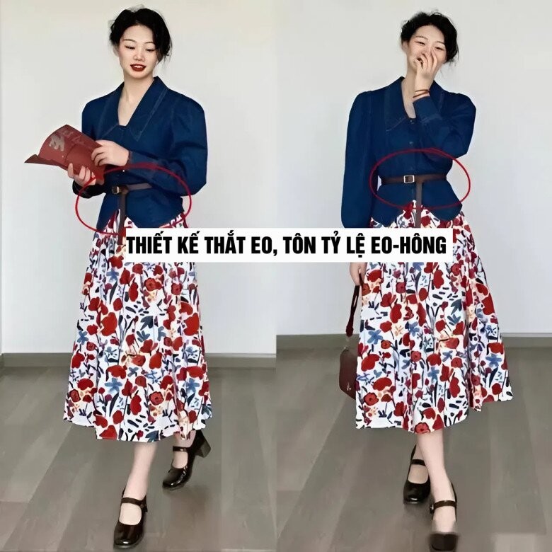 Điểm then chốt của item này nằm ở phần eo được chiết gọn, giúp định hình vóc dáng, che khuyết điểm vùng bụng và làm nổi bật nét nữ tính. Bên cạnh đó, họa tiết hoa nhỏ, màu sắc dịu nhẹ sẽ tăng thêm cảm giác tinh tế, cổ điển. Ngược lại, những thiết kế rộng thùng thình, thiếu điểm nhấn ở eo dễ khiến tổng thể trở nên luộm thuộm và kém tôn dáng.