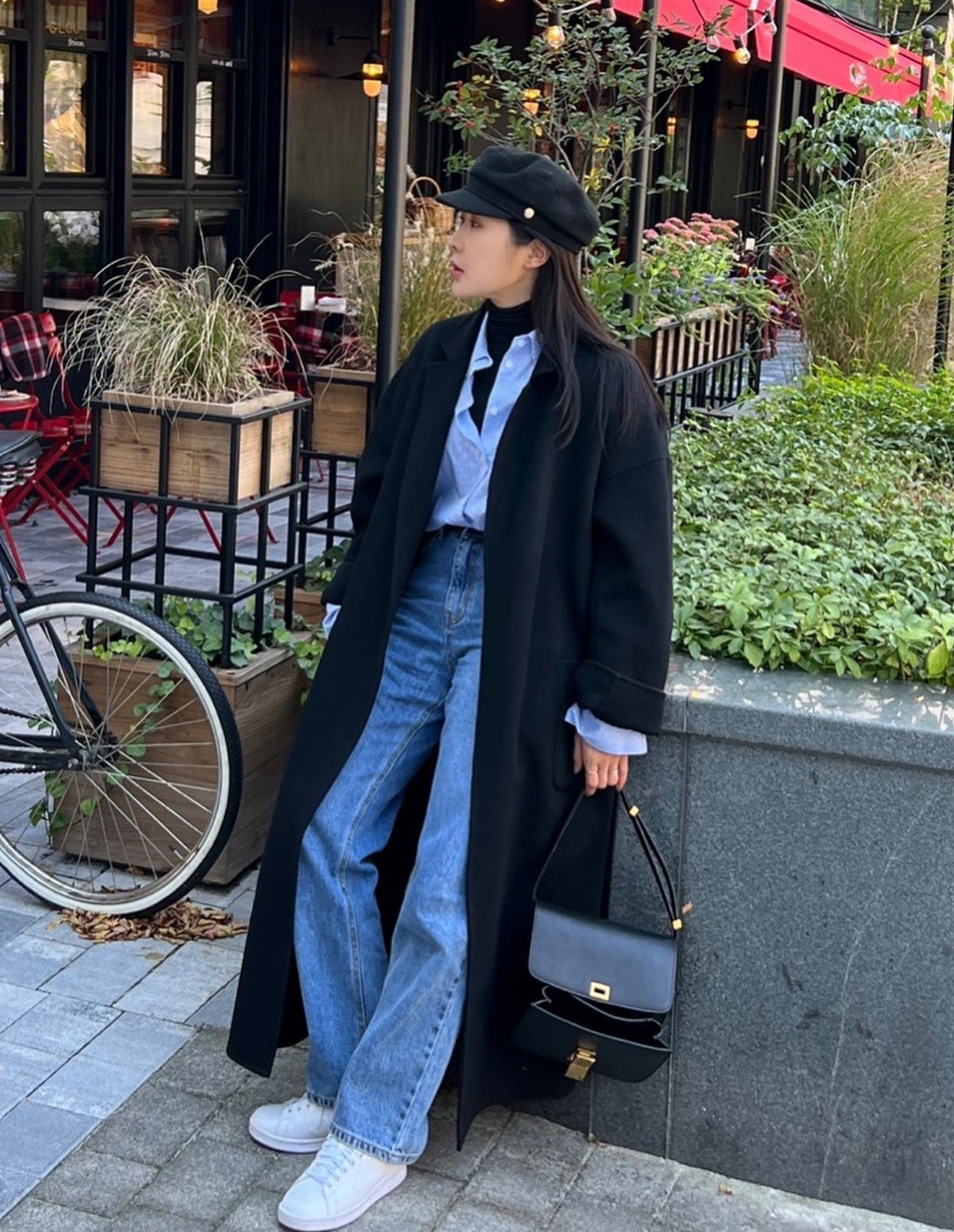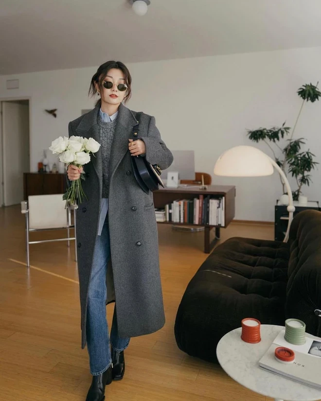 Áo dạ dài là lựa chọn lý tưởng khi muốn phối quần jeans theo phong cách sang trọng, chín chắn hơn. Kiểu áo khoác này giúp tổng thể trang phục trông có chiều sâu và đẳng cấp, ngay cả khi bên trong chỉ là set đồ đơn giản.